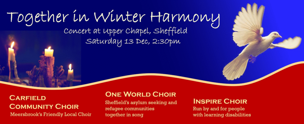 We would love you to come and join us at our winter concert this year, celebrating peace, diversity & community, with our friends The Inspire Choir and One World Choir.