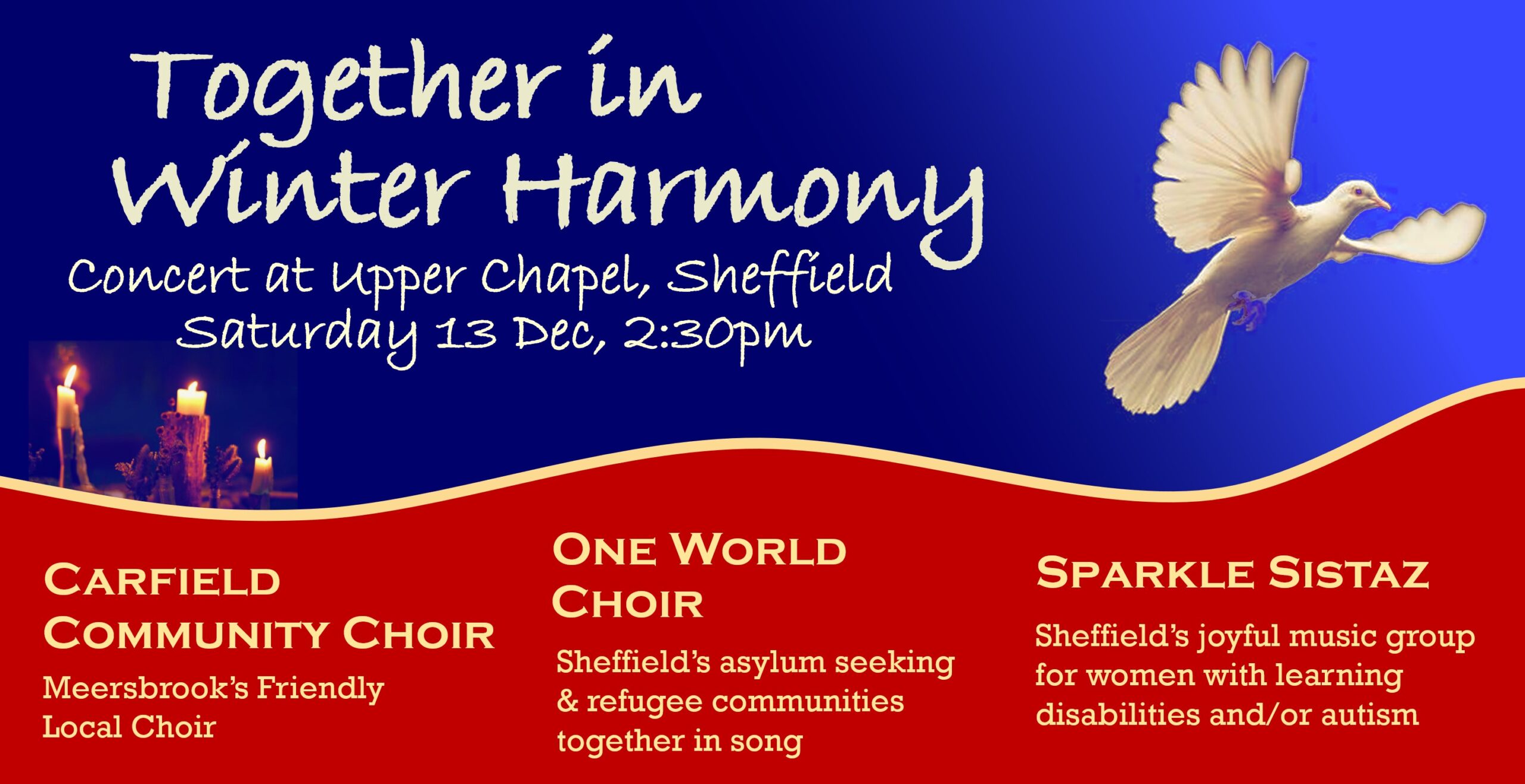 We would love you to come and join us at our winter concert this year, celebrating peace, diversity & community, with our friends The Sparkle Sistaz and One World Choir.
